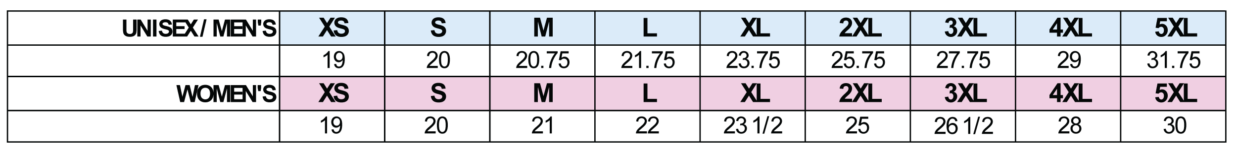 SIZE CHART